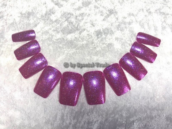 description: High-Class Wide Fit Long Violet Glitter Artificial Nails - Extra wide fingernails - for "men's hands"