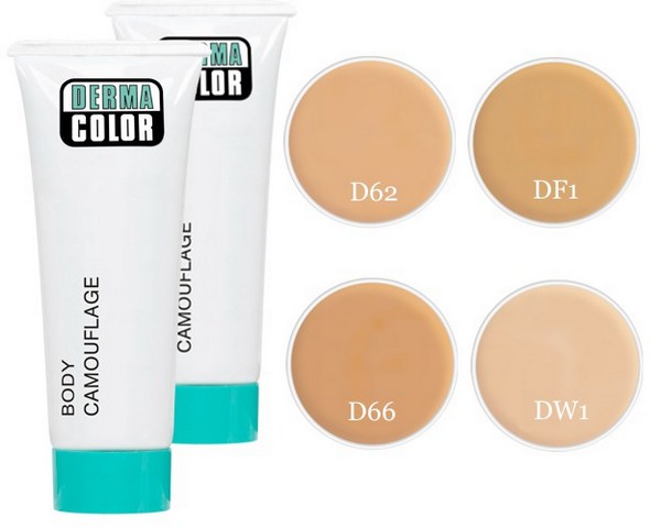 Special creme make-up for the camouflage of skin discolorations on body, arms, legs and hands. Durable, weatherproof, smudge-resistent. Does not need to be powdered. Equally effective in camouflaging pigmentation loss, and excess pigmentation caused by varicose veins, age spots, and other related and unrelated discoloration problems such as Vitiligo etc.